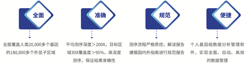 目前人類全部的基因約2萬多個,共計18萬多個外顯子?;蚴怯赏怙@子和內含子組成,外顯子是直接參與蛋白質編碼的DNA區(qū)域,約占整個人類基因組的1-2%,約85%的人類遺傳基因變異集中在外顯子區(qū)域?;诟咄繙y序技術的個人全外顯子組基因檢測能夠在基因水平上對疾病進行檢測,從而輔助醫(yī)生進行臨床診斷,確定疾病類型和患病風險,幫助患者及家屬明確病因和指導生育。