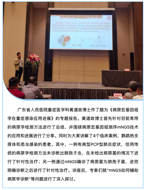 日前,福建省重癥醫(yī)學培訓會——中國重癥醫(yī)學多學科精髓(MCCRC)培訓班在福州召開。本次培訓班邀請了省內(nèi)外知名專家圍繞重癥醫(yī)學領域新技術的發(fā)展等內(nèi)容進行了專題報告,其中,廣東省人民醫(yī)院重癥醫(yī)學科黃道政博士及博奧晶典產(chǎn)品總監(jiān)劉瑩瑩博士受邀出席,并作了題為“病原宏基因組學在重癥感染應用進展”和“病原宏基因組學報告解讀”的專題報告,報告受到福建省醫(yī)學會重癥醫(yī)學分會主任委員、福建醫(yī)科大學附屬第一醫(yī)院ICU主任林建東教授的支持與點評。