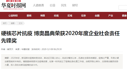 博奧晶典榮獲“2020年度企業(yè)社會(huì)責(zé)任先鋒獎(jiǎng)”