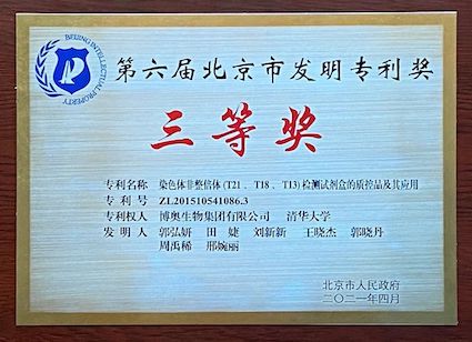 4月20日上午,京津冀促進(jìn)知識(shí)產(chǎn)權(quán)運(yùn)用工作會(huì)暨北京市發(fā)明專利獎(jiǎng)?lì)C獎(jiǎng)大會(huì)在京舉行,博奧生物集團(tuán)聯(lián)合清華大學(xué)的“染色體非整倍體(T21、T18、T13)檢測(cè)試劑盒的質(zhì)控品及其應(yīng)用”發(fā)明專利喜獲三等獎(jiǎng),彰顯了博奧生物在無創(chuàng)產(chǎn)前基因檢測(cè)技術(shù)上的先進(jìn)優(yōu)勢(shì)。
