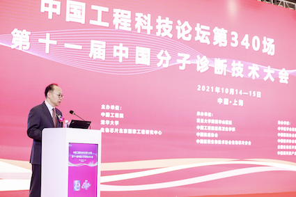 2021年10月14日,“中國工程科技論壇第340場第十一屆中國分子診斷技術(shù)大會”在上海市盛大開幕。會議由中國工程院、清華大學(xué)、生物芯片北京國家工程研究中心主辦,復(fù)旦大學(xué)附屬華山醫(yī)院、中國工程院醫(yī)藥衛(wèi)生學(xué)部、中國抗癌協(xié)會、中國醫(yī)藥生物技術(shù)協(xié)會生物芯片分會承辦,中華醫(yī)學(xué)會檢驗醫(yī)學(xué)分會、中國醫(yī)師協(xié)會檢驗醫(yī)師分會、中國醫(yī)院協(xié)會臨床檢驗管理專業(yè)委員會、全國生物芯片標(biāo)準(zhǔn)化技術(shù)委員會、中國高科技產(chǎn)業(yè)化研究會協(xié)辦。