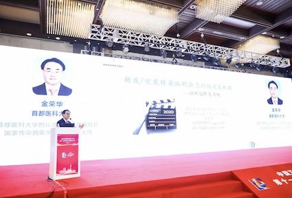 首都醫(yī)科大學(xué)附屬北京地壇醫(yī)院院長、國家傳染病醫(yī)學(xué)中心(北京)主任金榮華教授作報告