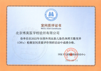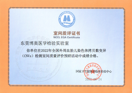 近日,國家衛(wèi)生健康委臨床檢驗(yàn)中心(NCCL)公布了2022年《全國外周血胎兒染色體拷貝數(shù)變異(CNVs)檢測室間質(zhì)量評價預(yù)研活動結(jié)果報告》,博奧晶典旗下北京博奧醫(yī)學(xué)檢驗(yàn)所有限公司和東莞博奧醫(yī)學(xué)檢驗(yàn)實(shí)驗(yàn)室滿分通過該項目室間質(zhì)評。