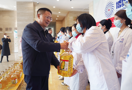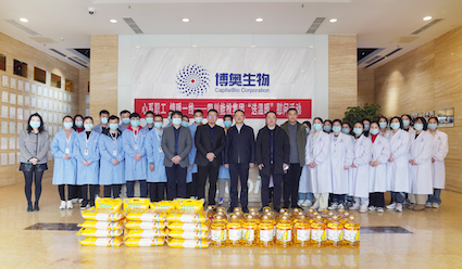 王誠董事長把慰問物品遞到大家手中,并送上誠摯的新春祝福。他對大家在過去一年里攻堅克難、勤奮工作,為博奧生物、四川能投創(chuàng)造的業(yè)績,特別是為抗擊疫情所做的貢獻(xiàn)給予充分肯定,勉勵大家在新的一年再接再厲、乘勢而上,再創(chuàng)新佳績。