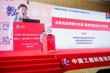 空軍軍醫(yī)大學(xué)西京醫(yī)院臨床免疫科主任醫(yī)師、全軍風(fēng)濕免疫??蒲芯克L(zhǎng)朱平教授作了題為《自身免疫病新生抗原,基因表型及分子分型》的報(bào)告。目前,強(qiáng)直性脊柱炎(ankylosing spondylitis,AS)等慢性自身免疫性疾病新生抗原形成的機(jī)制尚不清楚。朱平教授團(tuán)隊(duì)通過(guò)開放式質(zhì)譜檢測(cè)系統(tǒng)篩選鑒定到與AS相關(guān)的蛋白翻譯后修飾——半胱氨酸羧基乙基化修飾,證實(shí)ITA2B@C96car是相關(guān)分型自身免疫性疾病患者的重要發(fā)病機(jī)制,為修飾新生抗原相關(guān)自身免疫病的病因?qū)W研究提供了實(shí)驗(yàn)證據(jù)和重要研究思路。此外,朱平教授團(tuán)隊(duì)系統(tǒng)分析患者HLA分型、代謝狀態(tài)、新生抗原及特異性自身抗體水平,破解了自身免疫病“環(huán)境-代謝物-新修飾-新抗元”致病分子新機(jī)制,對(duì)建立AS等免疫病自身抗原特異性篩查和針對(duì)性治療策略具有重大意義探索。