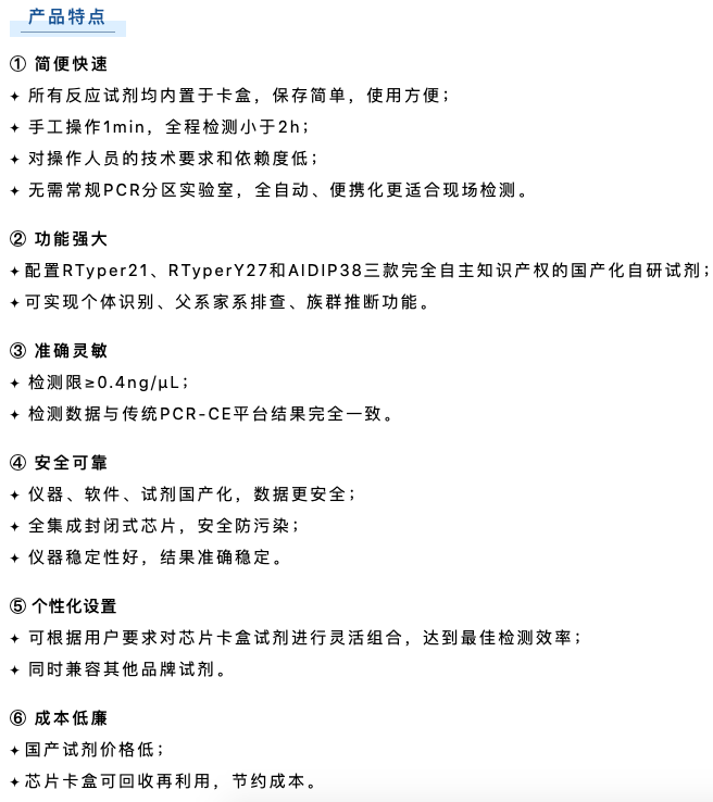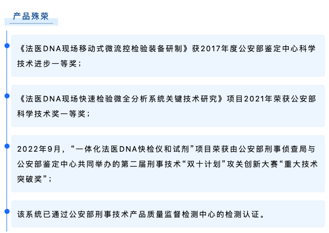 博奧晶典Quick TargSeq全集成自動化現場快速DNA檢測系統(tǒng)是由公安部鑒定中心聯合清華大學、博奧生物集團、北京博奧晶典生物技術有限公司共同開發(fā)的國內第一款具有完全自主知識產權的全集成自動化現場快速DNA檢測系統(tǒng)。該系統(tǒng)采用模塊化微流控芯片技術,將樣本前處理、多重 PCR 擴增和毛細管電泳全過程集成于一體,實現 2 小時“樣本進-結果出”的法醫(yī) DNA 現場快速檢測,可在野外、車載等非實驗室環(huán)境下運行,為我國公安機關現場犯罪偵破、海關出入境檢查、重大公共安全事件的快速處置增添強勁利器。目前,博奧晶典DNA快檢系統(tǒng)已遠銷俄羅斯、岡比亞等國,以先進的技術裝備支持刑事科學技術邁向新臺階。