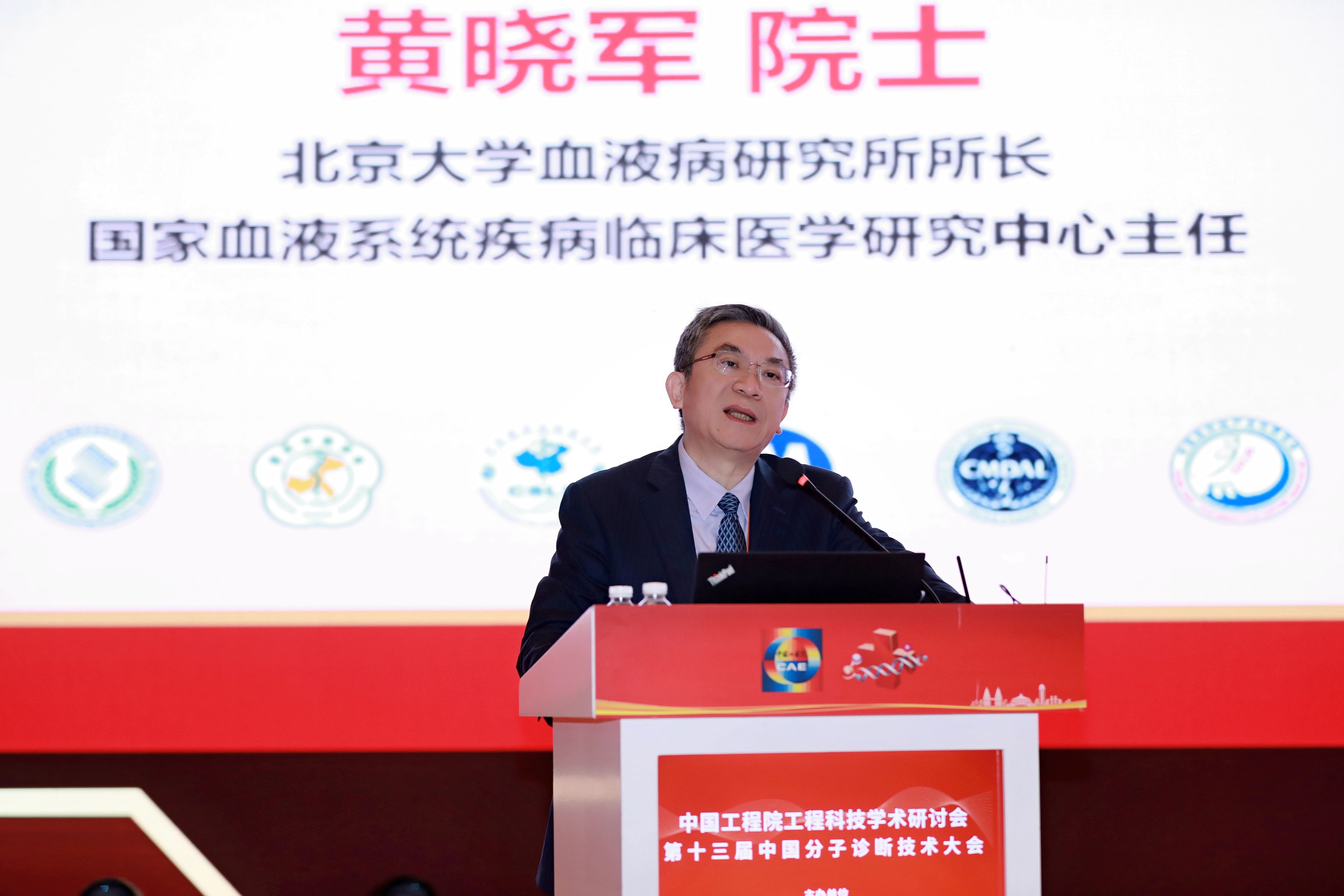 北京大學(xué)血液病研究所所長(zhǎng)、國(guó)家血液系統(tǒng)疾病臨床醫(yī)學(xué)研究中心主任黃曉軍院士做報(bào)告