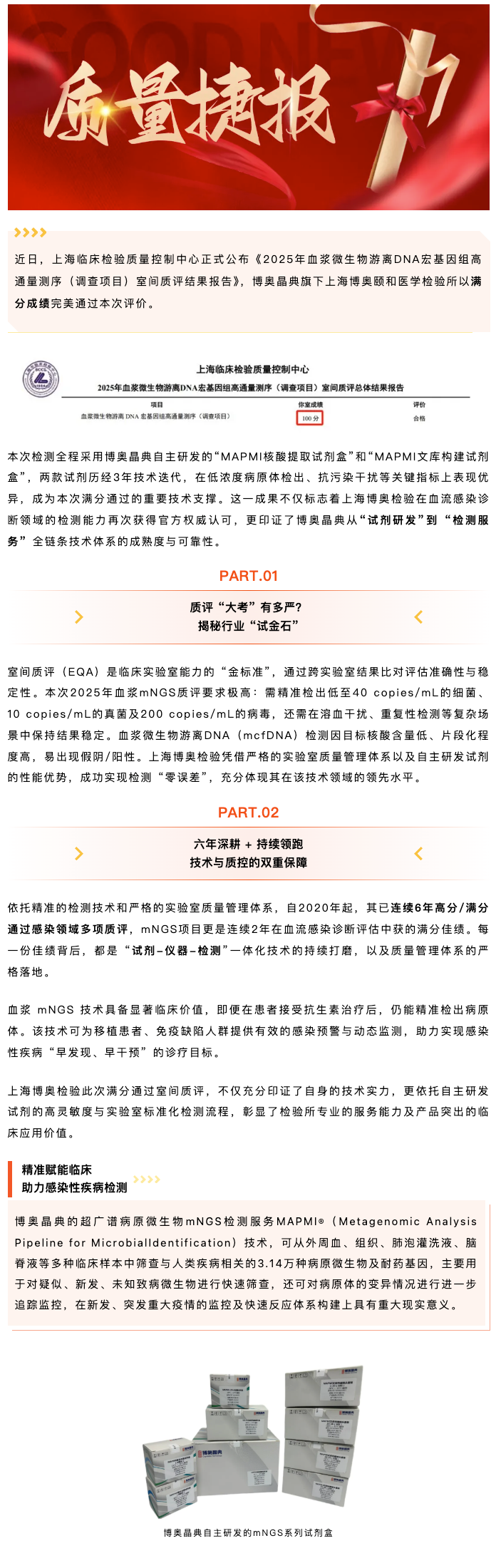 品質(zhì)加冕!博奧晶典旗下上海博奧檢驗滿分通過2025年血漿mNGS室間質(zhì)評