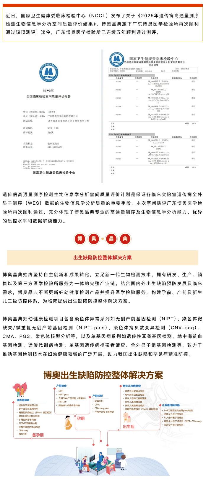 質(zhì)量捷報(bào) | 博奧晶典旗下檢驗(yàn)所滿分通過(guò)2025年NCCL遺傳病高通量測(cè)序檢測(cè)生物信息學(xué)分析室間質(zhì)評(píng)