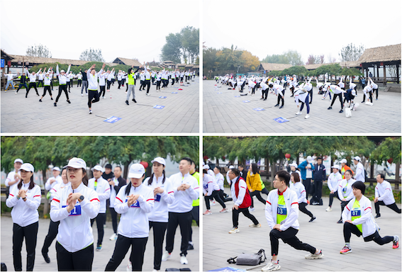 越野拉力賽前,所有參賽選手于通州大運河?xùn)|岸漕運碼頭休息長廊廣場集合進行賽前熱身,通過熱身提升關(guān)節(jié)靈活性,降低可能帶來的運動損傷風(fēng)險。